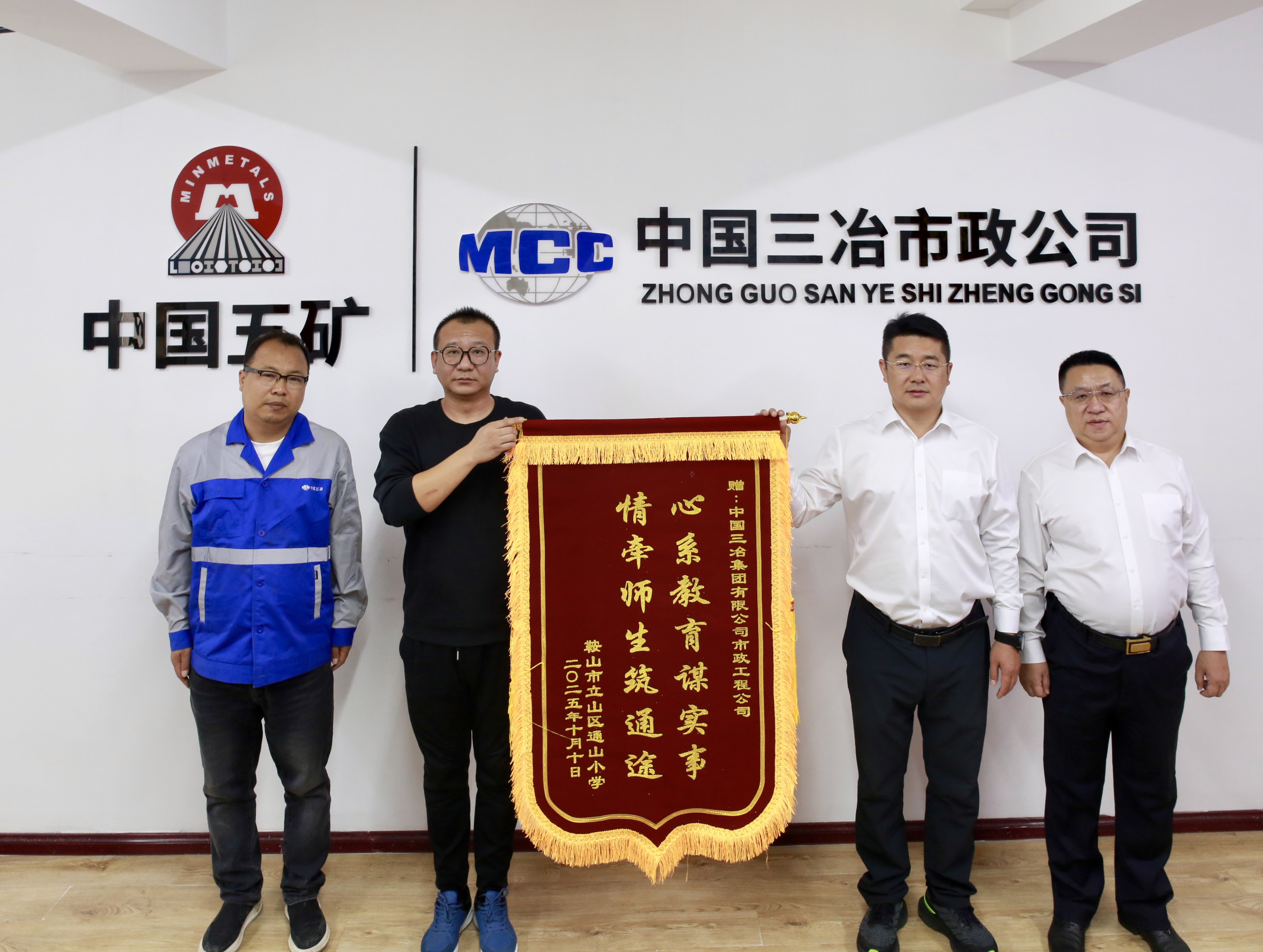 10月14日,市政工程公司迎來溫馨一幕——鞍山市通山小學(xué)相關(guān)負(fù)責(zé)人專程將一面寫有“心系教育謀實事 情牽師生筑通途”的錦旗贈予該公司,對其在校園修復(fù)改造中提供的幫助表示衷心感謝。